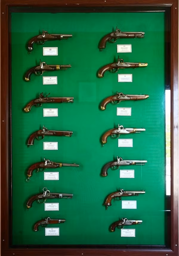 Súng cổ là nhóm hiện vật nhiều nhất trong bảo tàng: Súng cacbin của vua Napoleon Bonaparte (từ 1600 - 1620); súng lục nữ hoàng Anh năm 1728; súng máy Maxim Nga từng nổi đình nổi đám trong Thế chiến thứ I…