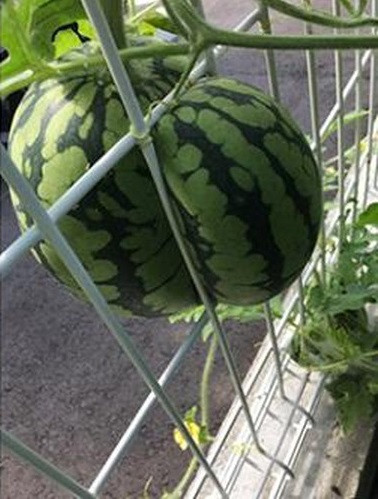 Có vẻ như quả dưa hấu tí hon đã nằm vắt vào mắt lưới trên hàng rào. Tới khi lớn lên, nó liền bị mắc kẹt tại đó, vì vậy rất khó để lấy ra.