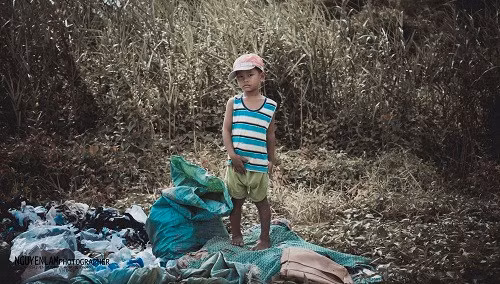 Bộ ảnh "Những đứa trẻ mưu sinh ở bãi rác" được nhiếp ảnh Hương Nguyên tình cờ chụp tại một bãi rác ở tỉnh Kiên Giang. Không được đến trường, không được vui đùa cùng bạn bè, công việc của các em là ngày ngày nhặt rác để kiếm sống.