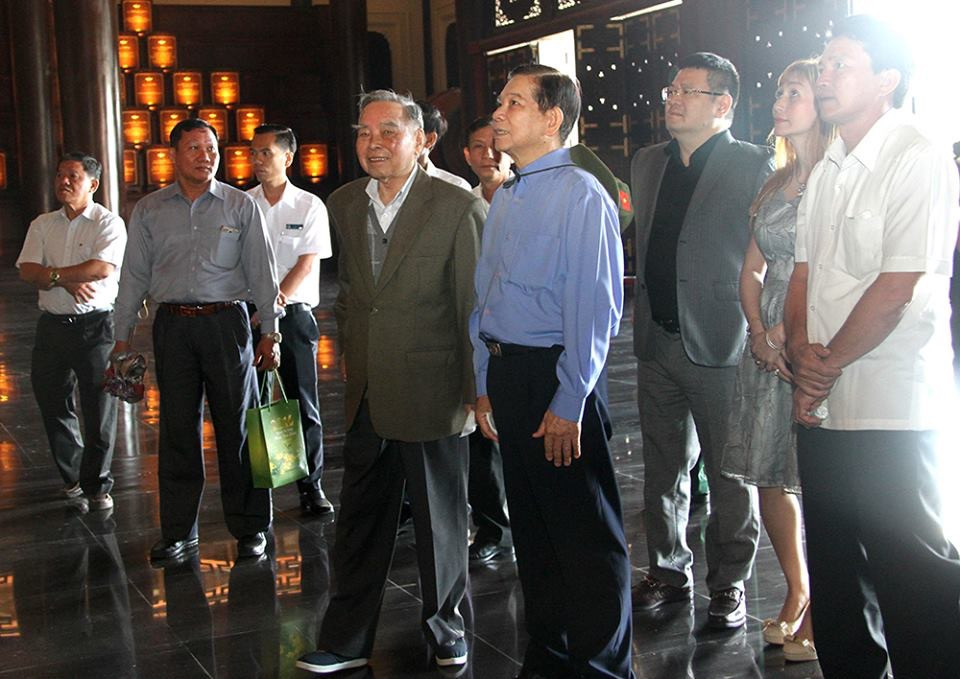 Nguyên Tổng bí thư Lê Khả Phiêu, nguyên Thủ tướng Phan Văn Khải, nguyên Chủ tịch nước Nguyễn Minh Triết và mọi người tại Đền tưởng niệm Bến Dược.