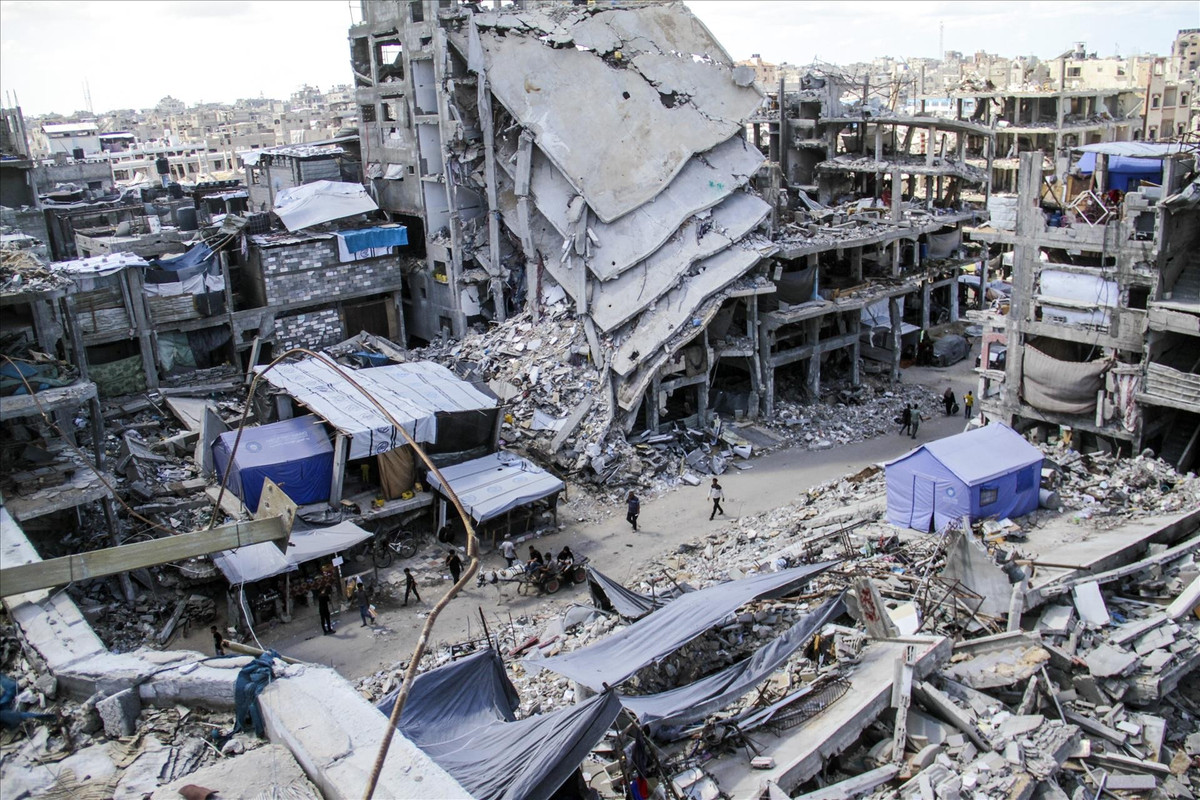 Những tòa nhà bị phá hủy sau các cuộc không kích của Israel xuống Dải Gaza. Ảnh: THX/TTXVN.