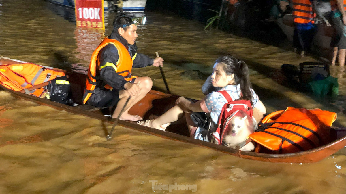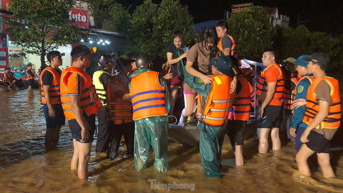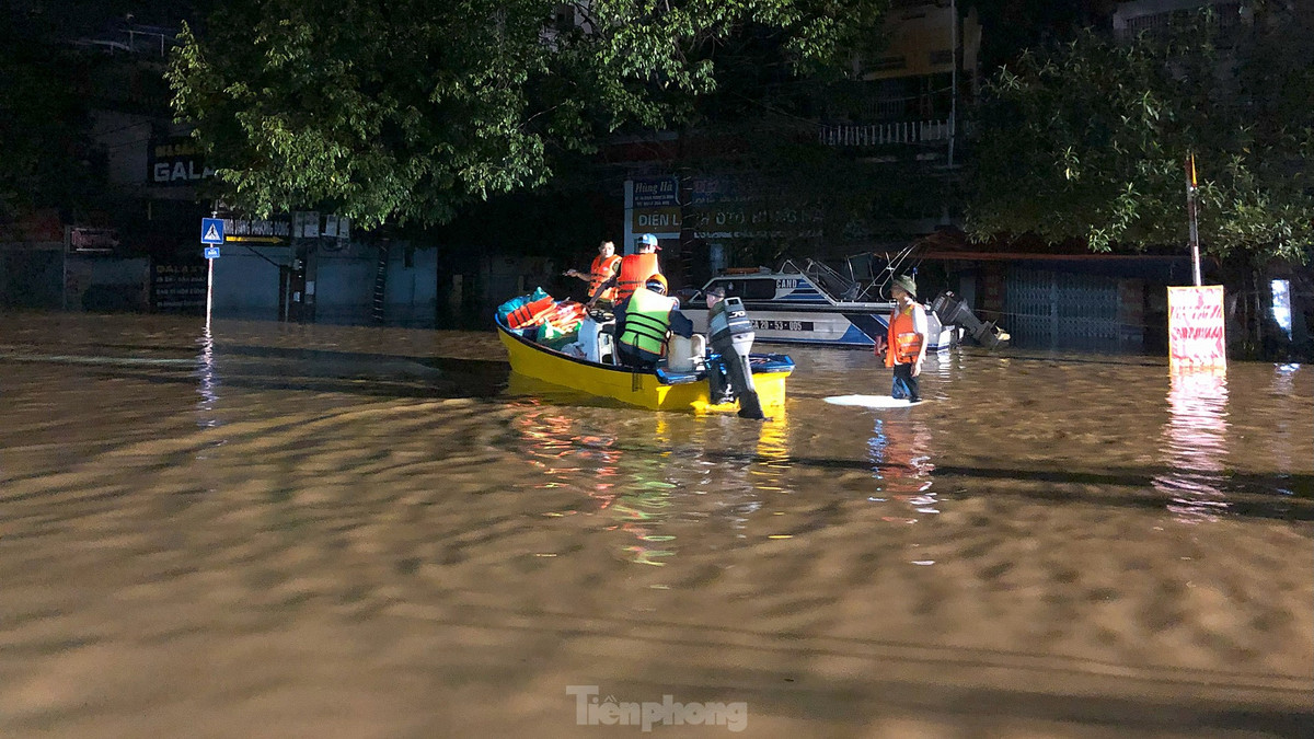 Theo chia sẻ của cán bộ, chiến sĩ thực hiện nhiệm vụ, họ tham gia cứu trợ các nạn nhân ảnh hưởng lũ lụt từ chiều tối ngày 8/9. Ảnh: Hoàng Mạnh Thắng
