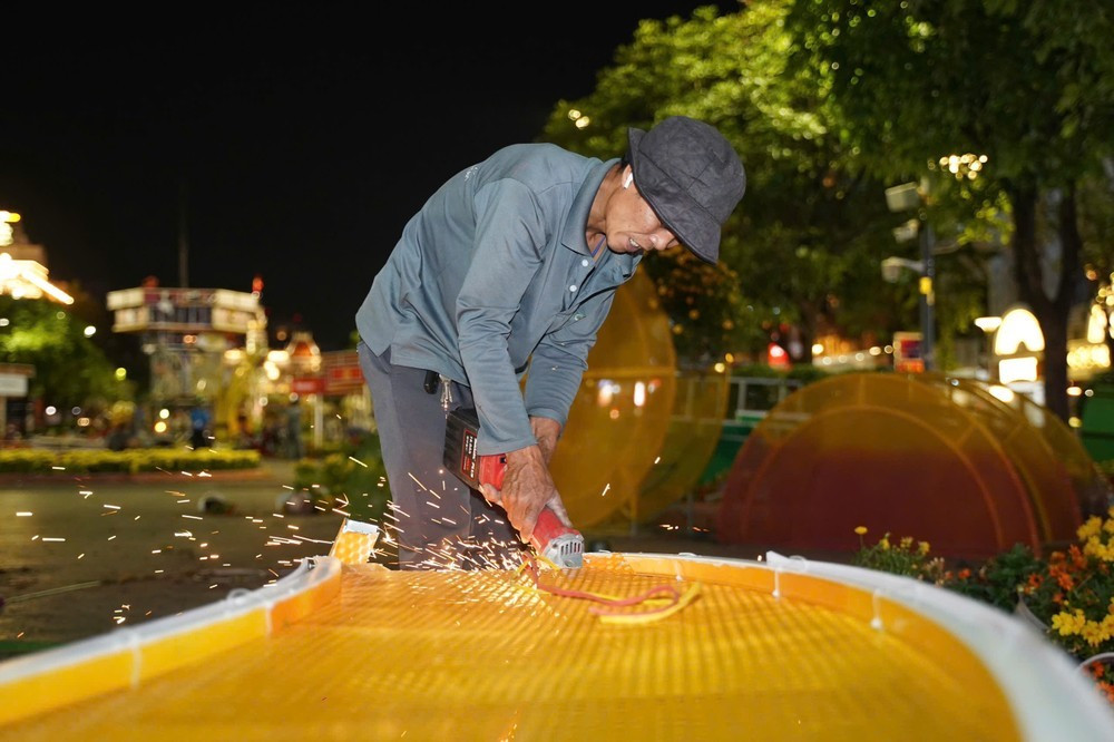 Những ngày cận Tết Bính Ngọ 2026, đường hoa Nguyễn Huệ được thi công ngày đêm, gấp rút hoàn thiện để kịp ra mắt, phục vụ người dân và du khách vui xuân.