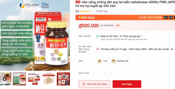 Sản phẩm được quảng cáo chống đột quỵ, tai biến được bán trên mạng. Ảnh chụp màn hình/Nguồn NLĐ